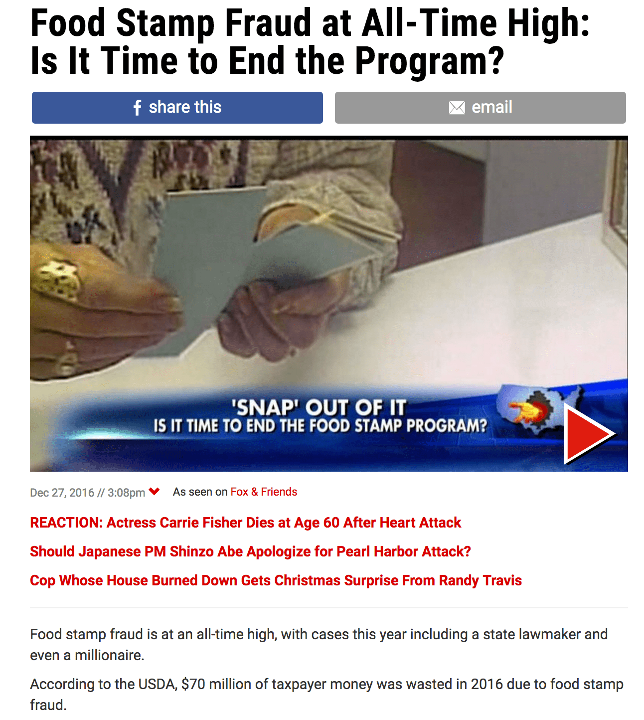 Fox News Claims Food Stamp Fraud Has Never Been Higher Attn